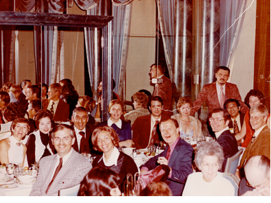 That’s my mom – the person at the table furthest to the left in the neat sleeveless white number with the big broach.