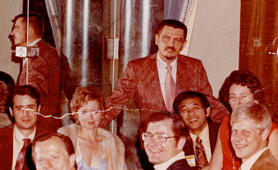 I came across this old photo. That is my dad there at the top and reflected in the mirror on the left. This was 1973 at some doctor’s thing, my dad being a doctor himself. The photo was torn but taped back together. Everyone is looking at the camera, everyone except the woman sitting to the left of my father – the one who thought it would be a perfect night to wear her negligee to the doctor’s thing.